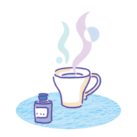 デスク周りの加湿に、マグカップにお湯を入れたものに、アロマオイルを合計で3~5滴落としてお試しください。